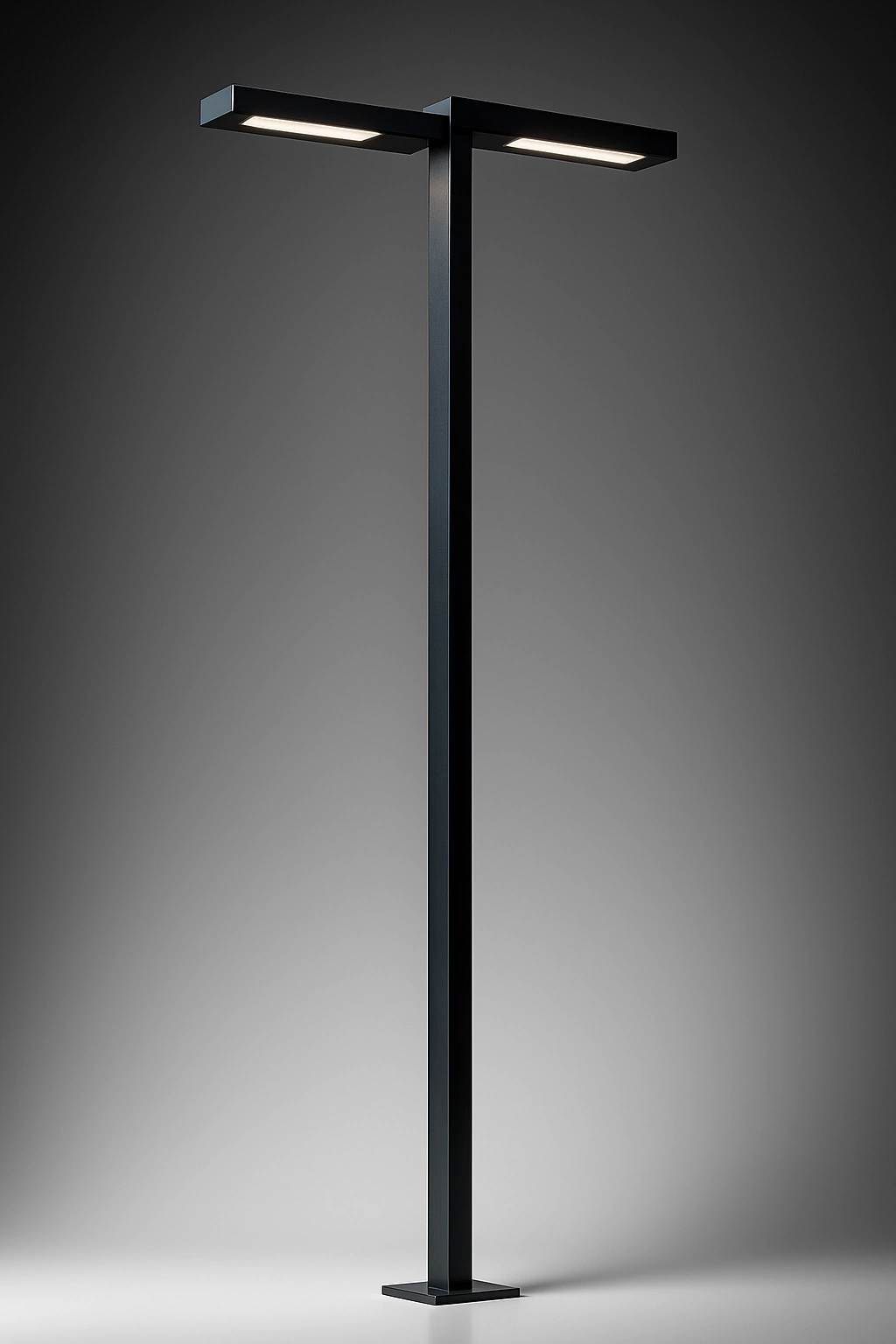 La Farola BASTY de 200W es una solución de iluminación eficiente y potente para grandes espacios exteriores. Su diseño con doble cabezal garantiza una distribución uniforme de la luz, mejorando la visibilidad en áreas urbanas, calles y espacios públicos. Construida en acero negro, asegura durabilidad y resistencia a condiciones climáticas adversas.